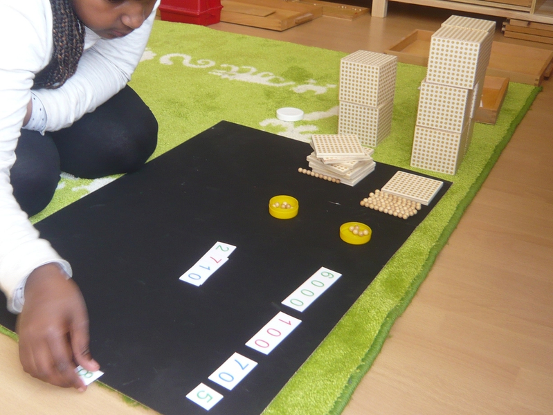 Der spielerische Umgang mit Montessori Material ist ideal, um Mathematik sinnlich zu be-greifen: